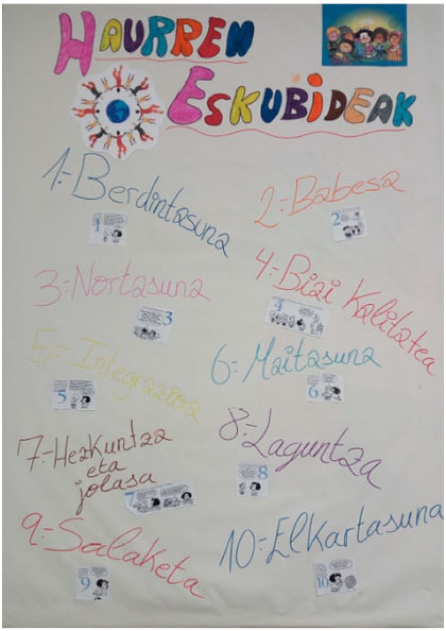 Hamar dira haurren eskubideak, irudian ikus ditzazkezuen moduan. Eta haur guztiak dituzte, edozein arraza, sexu zein erlijio dutela. Teoria polita da baina praktikan haur asko eta asko daude ezer gabe eta egoera txarretan. Horregatik, zer hobeago haurrekin jarri eta horretaz hitz egitea baino eta errealitatea erakustea, guregatik haratago ere batzuk badaudelako eta zu behar zaituztelako.