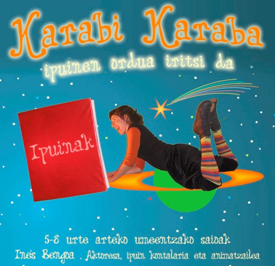 "KARABI KARABA" ipuin kontaketa, Ines Bengoan eskutik, azaroaren 14ean, 11:30ean, liburutegian. Ikuskizuna HH5-LH3 bitarteko haurrei zuzendua dago. Plaza mugatuak dira. Izen ematea; liburutegi bertan izango da edo 943.85.08.98 telefono zenbakira deituta.