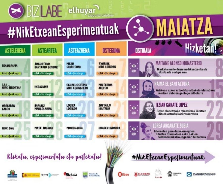 BIZILABE ELHUYAR eskutik, gaur egun bizi garen konfinamentu egoerari aurre egiteko, "Nik etxean esperimentatuz" ekimena sortu dute eta jada Maiatzeko egitaraua lotu dute. Ekimena 10-15 urte bitarteko gazteei zuzenduta dago eta ekimen ugari zehaztuak daude.