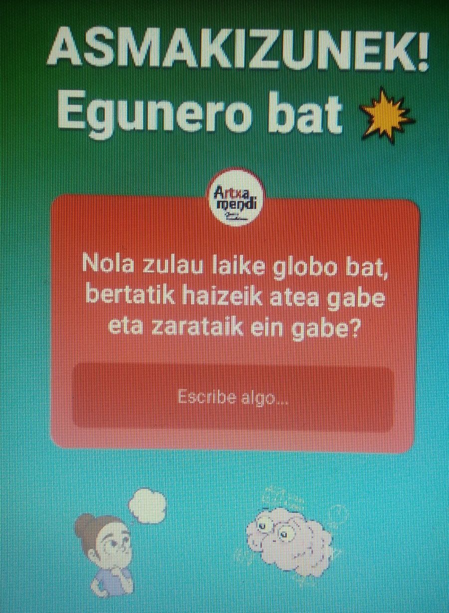 Artxamendin egunero ASMAKIZUN bat plateatuko dizuegu, gure sare sozialen bitartez. Animatzen zara parte hartzera? Zure zain daude bertako hezitzaileak? Bidali erantzuna edo idatzi Instagrameko gure kontuan @artxamenditopalekua